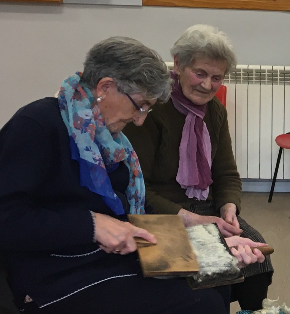 Ta encomensà, ditos que se mos va despertà l’interés cuan ta prensipes d’abril se ban posà en contacto dan nusaltras unas donas choves que queriban apenre els treballs de la llana, y queriban ragonà dan las Donisas que eban viviu a la época en la que istes treballs yeran fayena cotidiana.