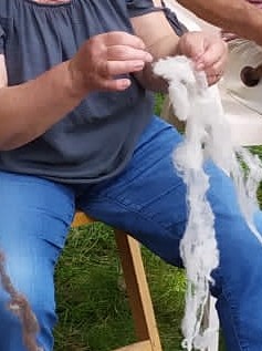 Una vegada que s’eba ixugau la llana, ya bem podé encomensà a treballa-la.