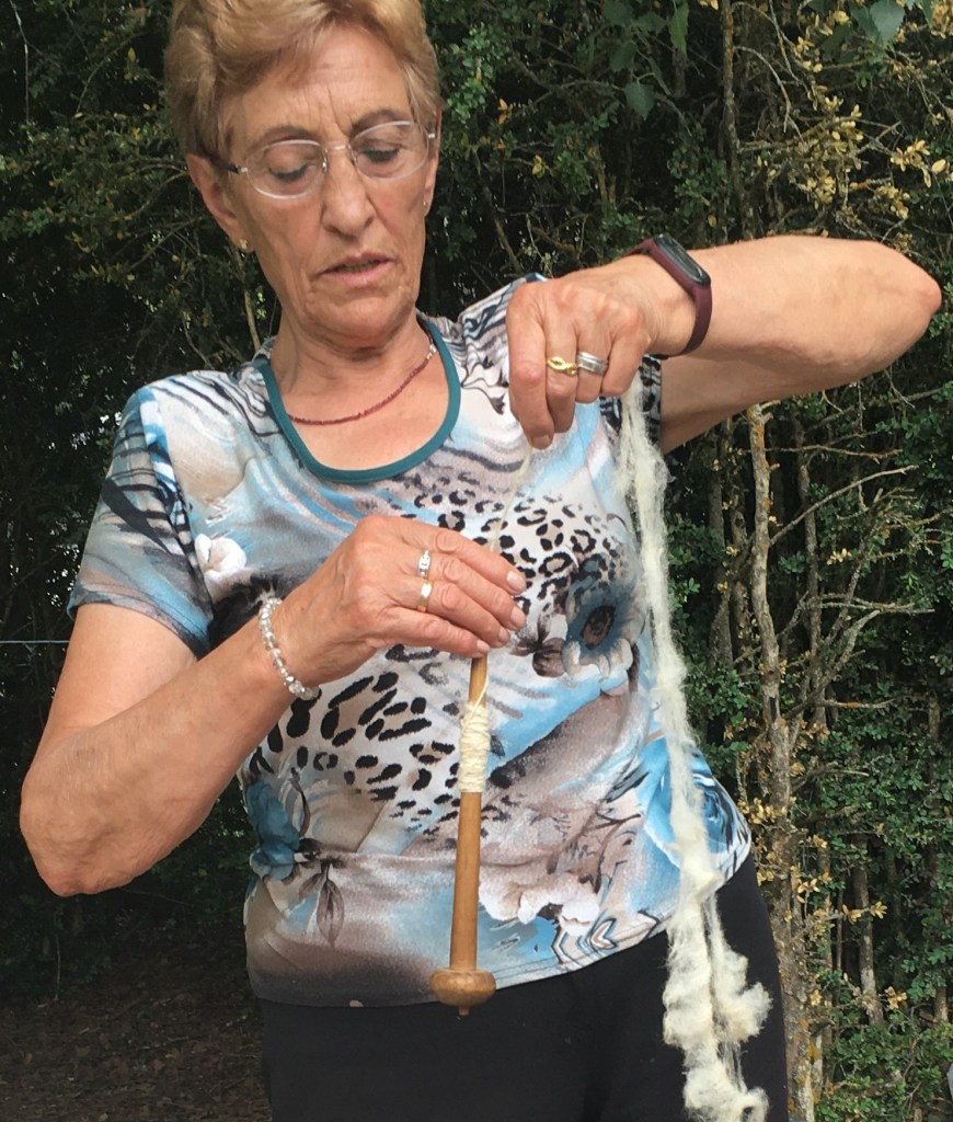 Una vegada que ya hem filau un parell de fusos de llana, se fa una madeixa ta llava-la y tinta-la si se quere, y dispués de ixuta se fa un diviello.
