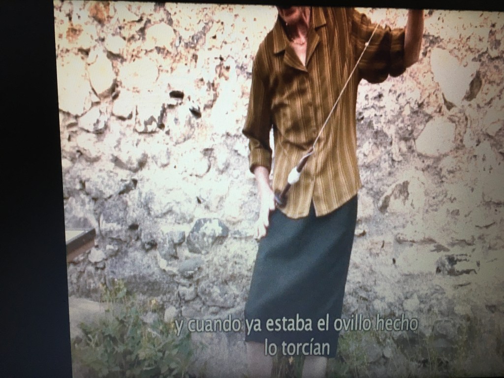 Yei que sujetà la veta de llana al fuso y ana-la estiran sin trenca-la ta que se faga més prima.