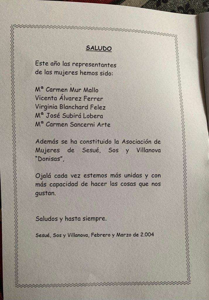 Ésta fue nuestra respuesta: «Nos sentimos muy honradas con la decisión del Ayuntamiento de bautizar a la nueva campana con el nombre de «Donisa». Gracias, porque es un reconocimiento a las mujeres de la Asociación Donisas, que como la campana están investidas por la esencia histórica del pueblo, y han dejado impresas sus palabras en los libros, así como la campana las imprime en el aire. La historia de las Donisas quedará ya para siempre unida a esta campana. Muchas gracias».