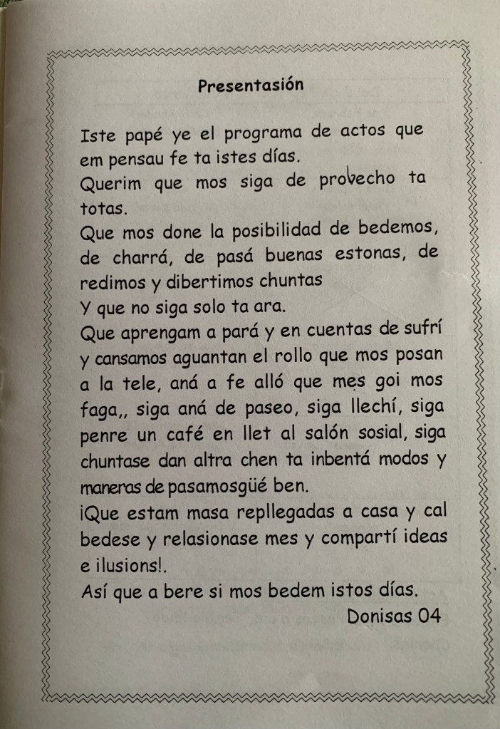 Tradujimos unos relatos que nos habían gustado, a la lengua autóctona del Valle: el Patués.